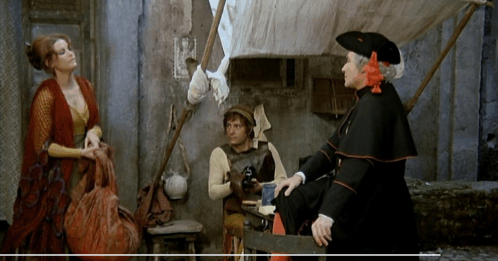 Le grida del Frate (Alberto Sordi) durante l’assalto popolare di Castel Sant’Angelo fanno, invece, da contraltare ai discorsi illuminati dei due condannati a morte, ponendo allo spettatore un ulteriore punto di vista: