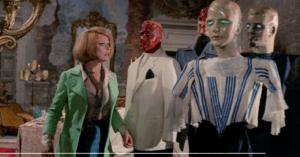 A una lettura in controluce dell’opera il diavolo del titolo potrebbe essere lo stesso autore. Egli è infatti colui che muove tutto e sa ogni cosa, è quello che riporta Lisa indietro nel tempo e/o nello spazio per un suo purissimo gusto personale. Egli è l’addetto alla creazione dei fantocci utilizzati per le cerimonie funebri, crea dei pupazzi così come Bava ha creato lui e gli altri personaggi ed è proprio questa macabra metafora che rende la pellicola estremamente godibile e soprattutto grazie all’ironia che essa suscita (in quanto Leandro organizza tutto sapendo già che nessuno sopravviverà). La suggestione metacinematografica è affascinante, soprattutto se corredata da una messinscena e da un utilizzo dello stile a così alti livelli. Le macabre sequenze di morte e gli ambigui rapporti che intercorrono tra i protagonisti colpiscono per la nitidezza, quasi tattile, che hanno i luoghi in cui questi si muovono, i vestiti che indossano o gli oggetti che maneggiano. La vividezza dei colori di quello che mette in scena Bava non restituisce la sensazione dell’incubo, ma la realtà di un truculento massacro su cui non si ha potere di intervenire. Allo stesso tempo non si può distogliere lo sguardo da questa maison gotica e allo stesso tempo barocca, il cortocircuito è stato creato e lo spettatore continua ad essere assoggettato al diavolo.