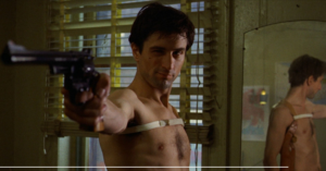 Travis acquista le armi da un venditore del mercato nero e, davanti allo specchio, inizia a provare le pistole, affinando la postura, ripetendo le battute che segneranno il suo ruolo di giustiziere solitario. Lo specchio, però, non è solo il riflesso della sua immagine: è il luogo dove la sua identità si sgretola e si ricostruisce. Si prepara a fronteggiare un nemico invisibile, mentre la città scorre indifferente e ignara oltre la sua finestra.